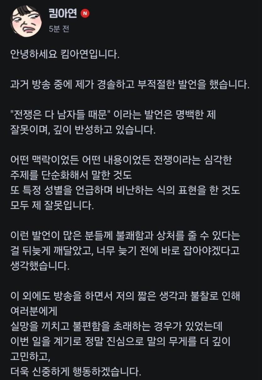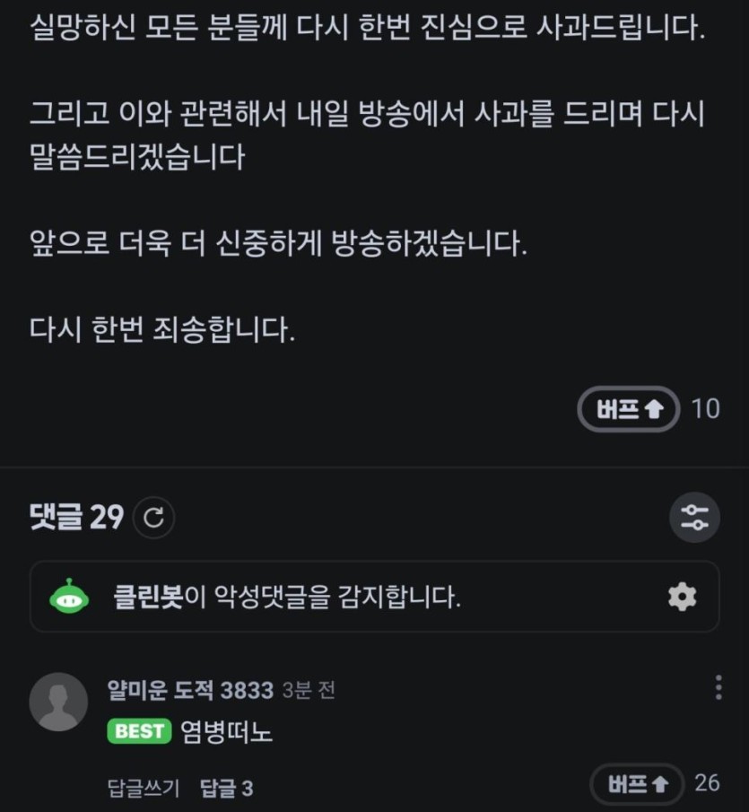 전쟁은 남자가 발언한 스트리머 사과문에 달린 일침 댓글 ㅋㅋㅋㅋ.jpg