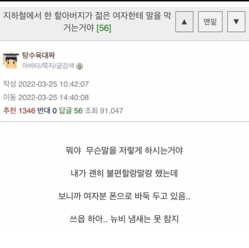 지하철에서 젊은 여자한테 자꾸 말거는 할배.jpg