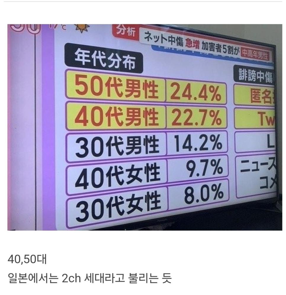 넷상에서 악플다는 일본인의 연령분포