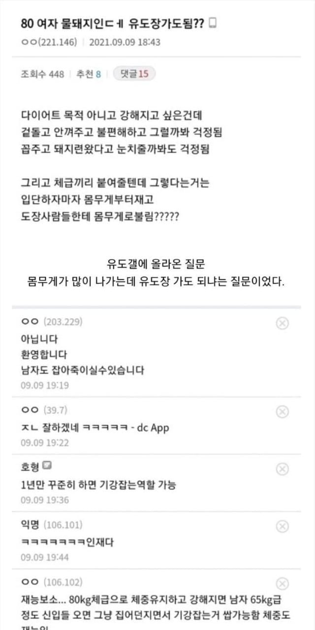 80kg 여자 물돼지인데 유도장 가도 됨?