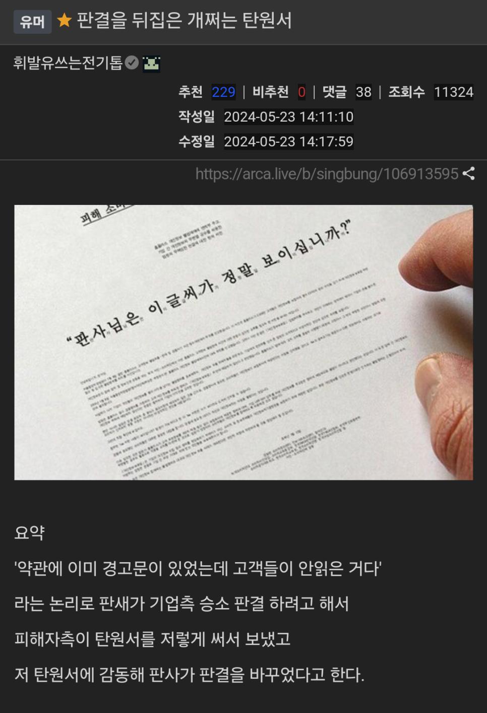 판결을 뒤집은 개쩌는 탄원서