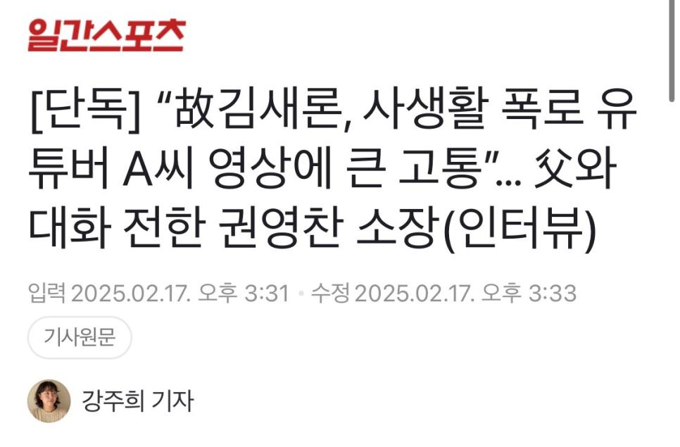 “故김새론, 사생활 폭로 유튜버 A씨 영상에 큰 고통”