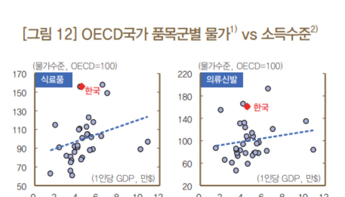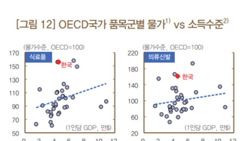 첫번째 짤에서 보이는 한국은행의 oecd 통계자료를 기반 분석자료에 의하면 한국의 의류 비용은 타국대비