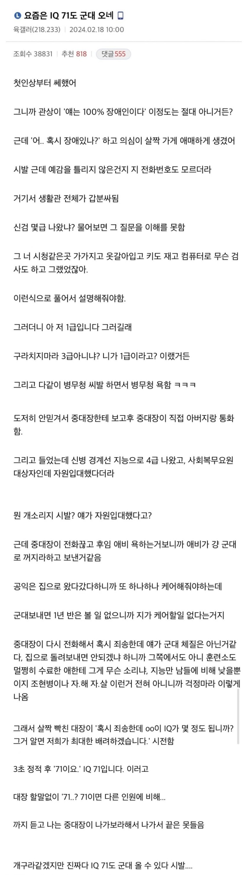 [유머] 요즘은 IQ 71도 군대 오네….jpg