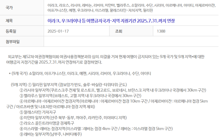 문제는 이라크는 현재 외교부가 지정한 여행금지국이라는 것.