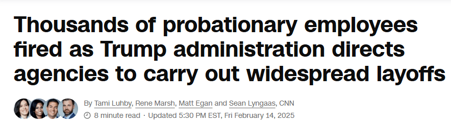 미국에서 공무원 1만명 가까이 해고 됨 "발런타인데이 대학살"ㄷㄷㄷ rh1 0 103 0 2025.02.16 19:30 트럼프가 14일에 미국 내무부, 에너지부, 보훈부, 농무부, 보건복지부 등 공무원들 1만명 가까이 해고해서 난리남대부분이 근무기간이 1년미만이었던 수습사원을 모두 해고처리한 것으로 추산대부분 이메일로 "30분 안에 짐 싸서 나가라"고 통보 받음일간에선 발런타인데이 대학살이라고 부르고 있음근데 다음주에 수천명을 더 해고할 준비를 하고 있다고 함 ㄷㄷ 0