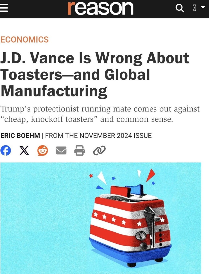 부통령 밴스가 중국제 식빵 토스트기 하나 때문에