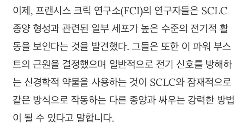 소세포 폐암이라는 암세포에 대해 연구했더니 전기적 활동을 하는걸 발견