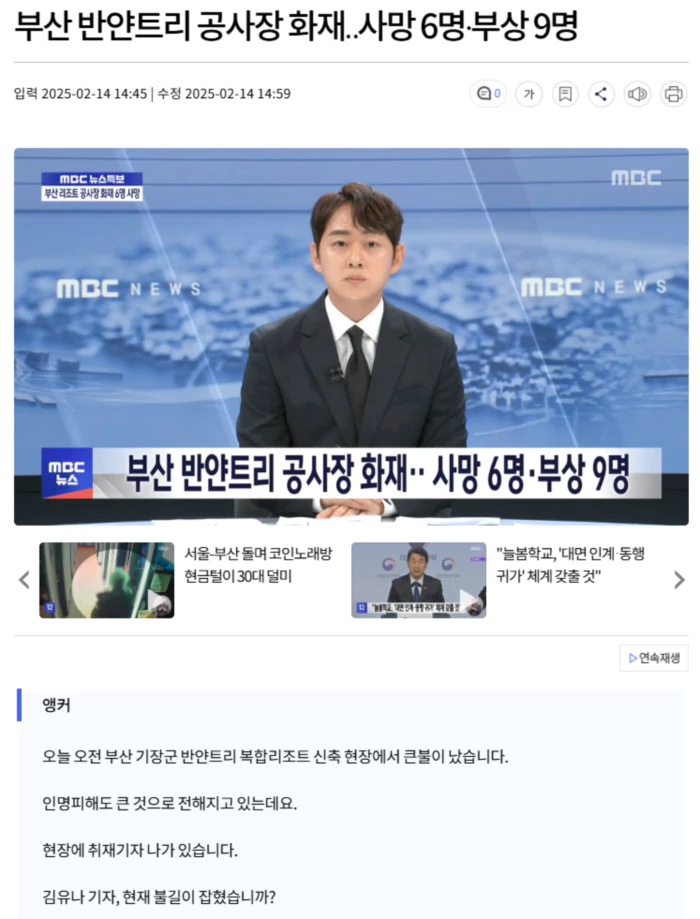 부산 반얀트리 공사장 화재.. 사망 6명·부상 9명