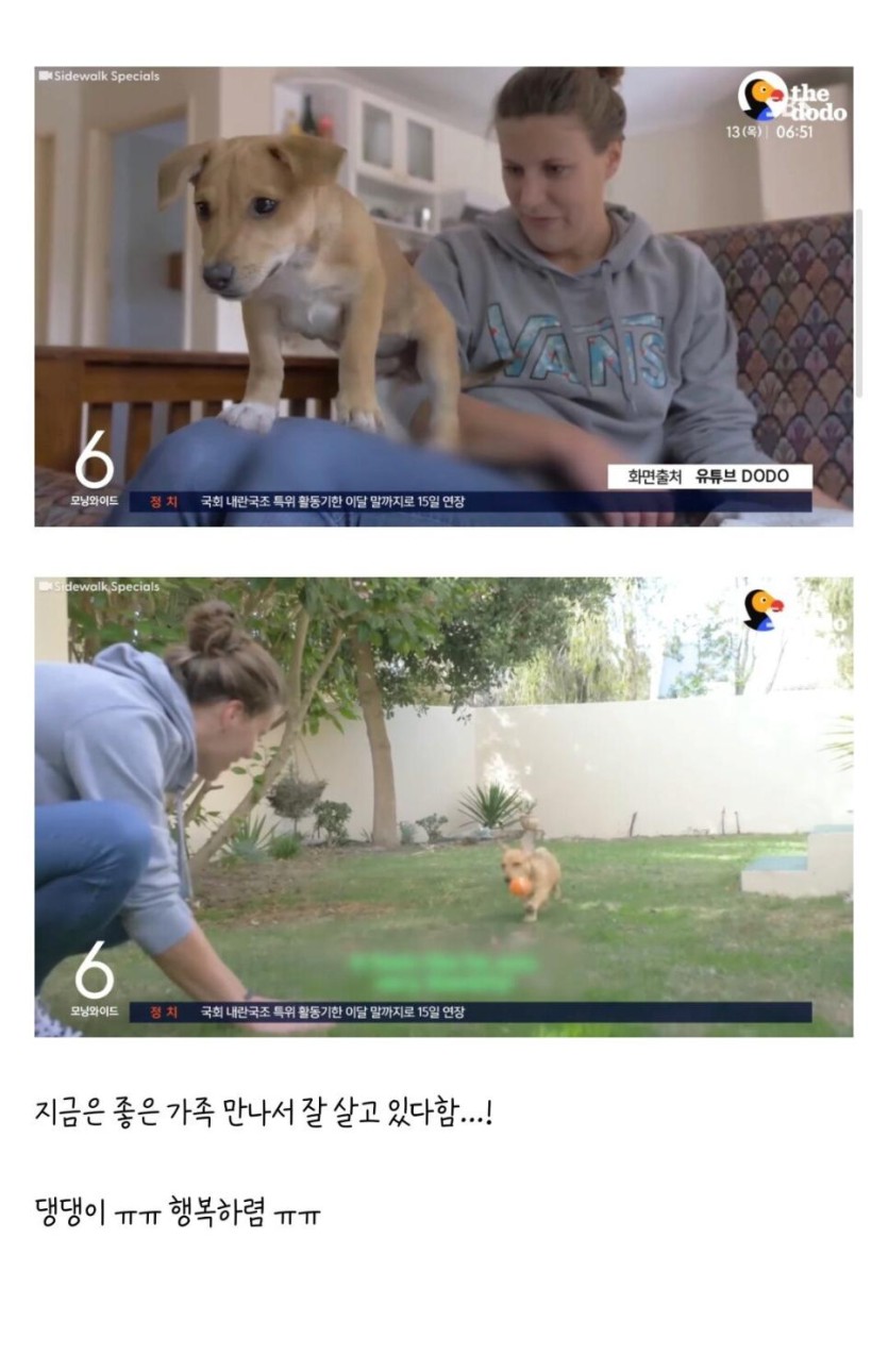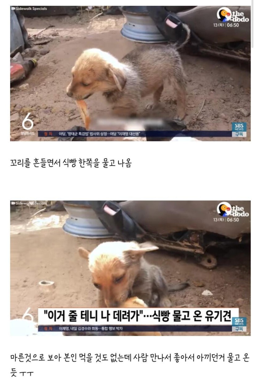보호단체 직원들 보고 아끼던 식빵을 물고 온 유기견