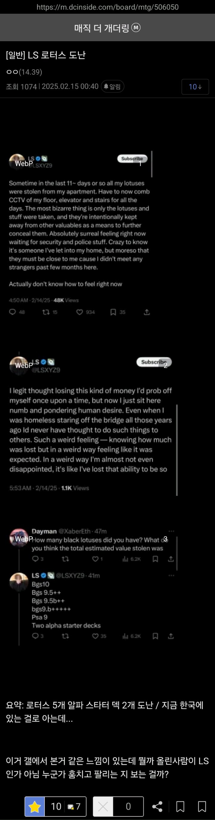 실시간으로 벌어지고있는 1억짜리 카드 도난사건 rh1 0 122 0 2025.02.16 09:15 어떤 ㅁㅊㄴ이 훔친 장물 시세를 디시인사이드에 물어봄근데 주인아는 갤럼이 카드 팔았냐고 주인한테 DM보내서 장물인거 걸림 ㅋㅋ 0