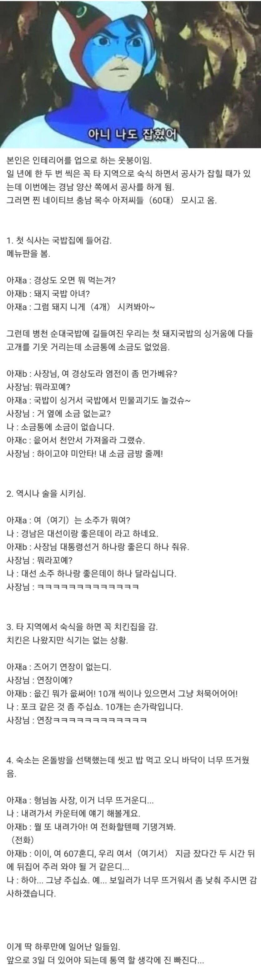 충남 아저씨들의 경남에서 충청 바이브 썰.
