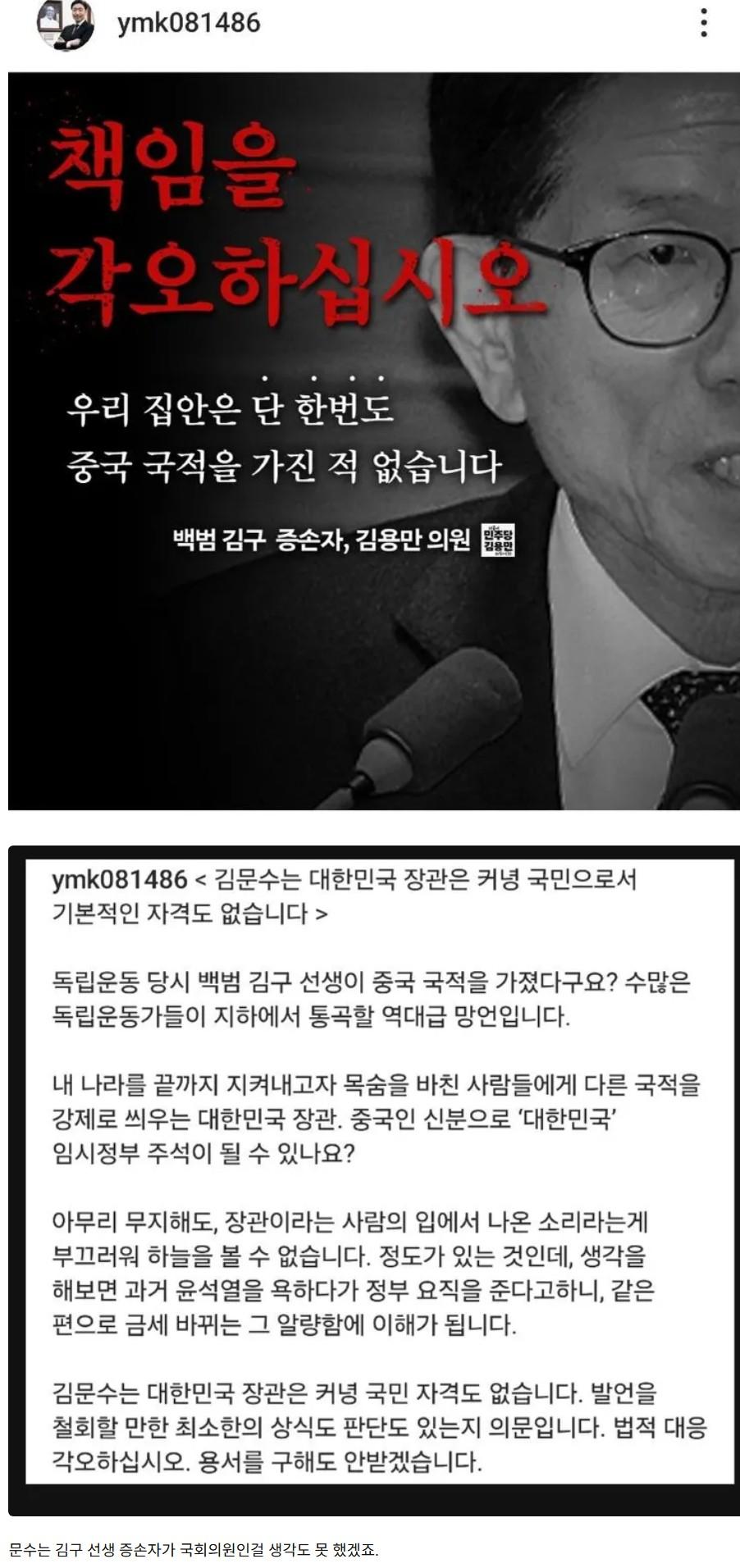 백범 김구 증손자, 김용만의원의 김문수법적대응