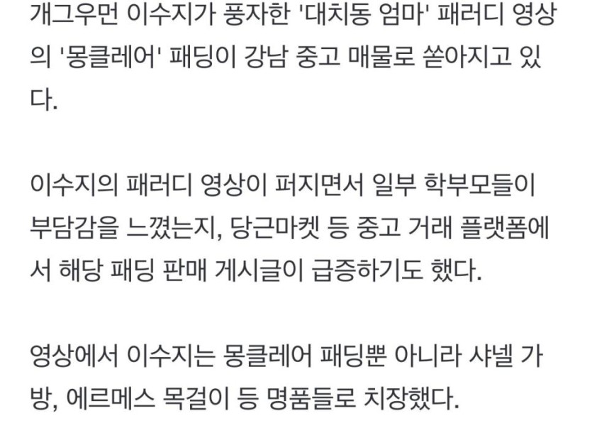 몽클레어 패딩 묻어버린 이수지 ㅋㅋㅋ