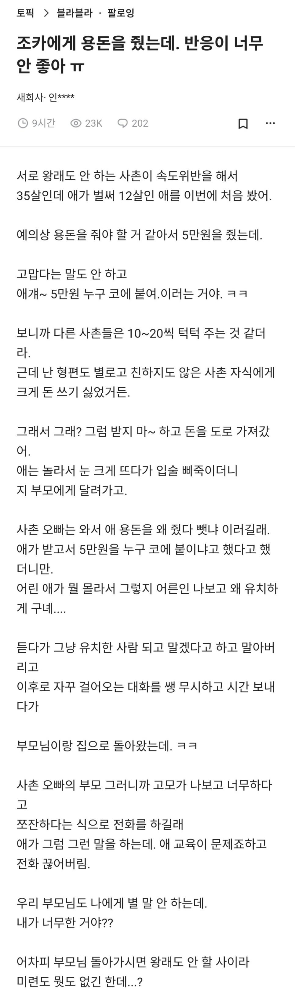[유머] 조카에게 용돈을 줬는데 반응이 너무 안 좋아