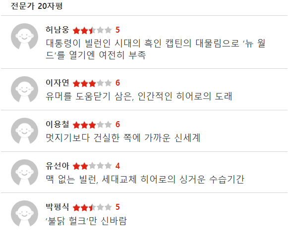 신 캡틴 아메리카, 씨네21 전문가 평점 공개