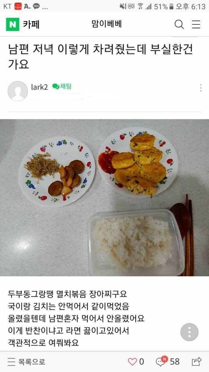 남편 저녘밥이 부실한가요?