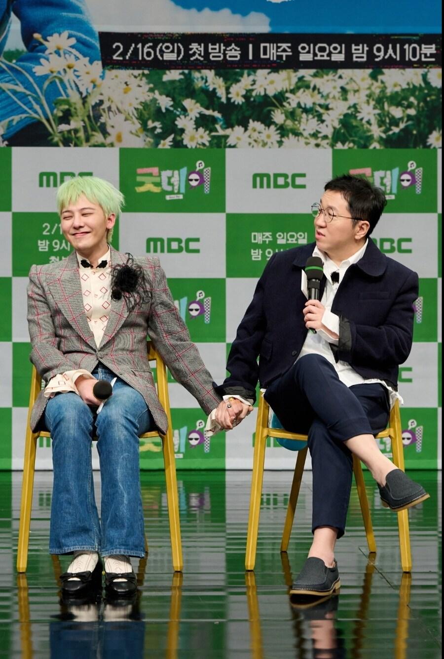 예능 굿데이 제작발표회에서 손잡고 있는 gd와 정형돈.jpg