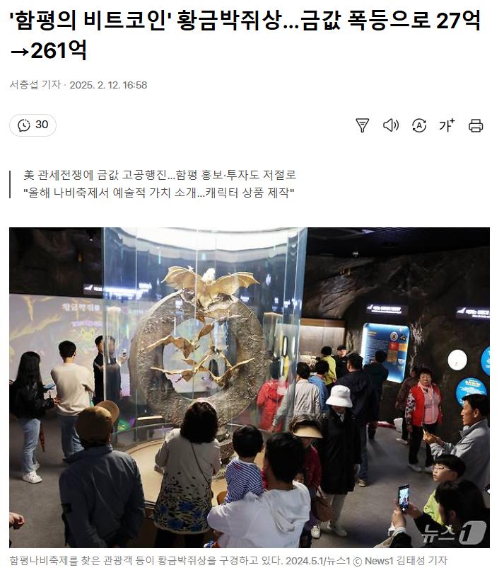 함평 황금박쥐상 조만간 텐베거 가능