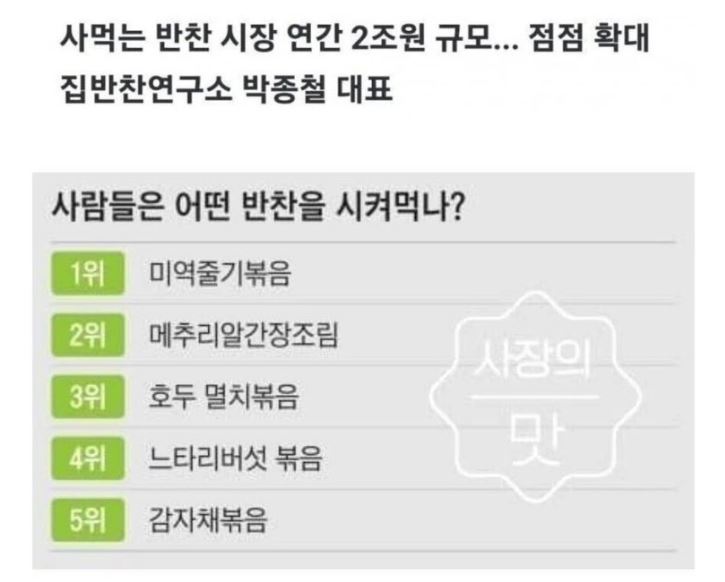 사람들이 많이 사먹는 반찬