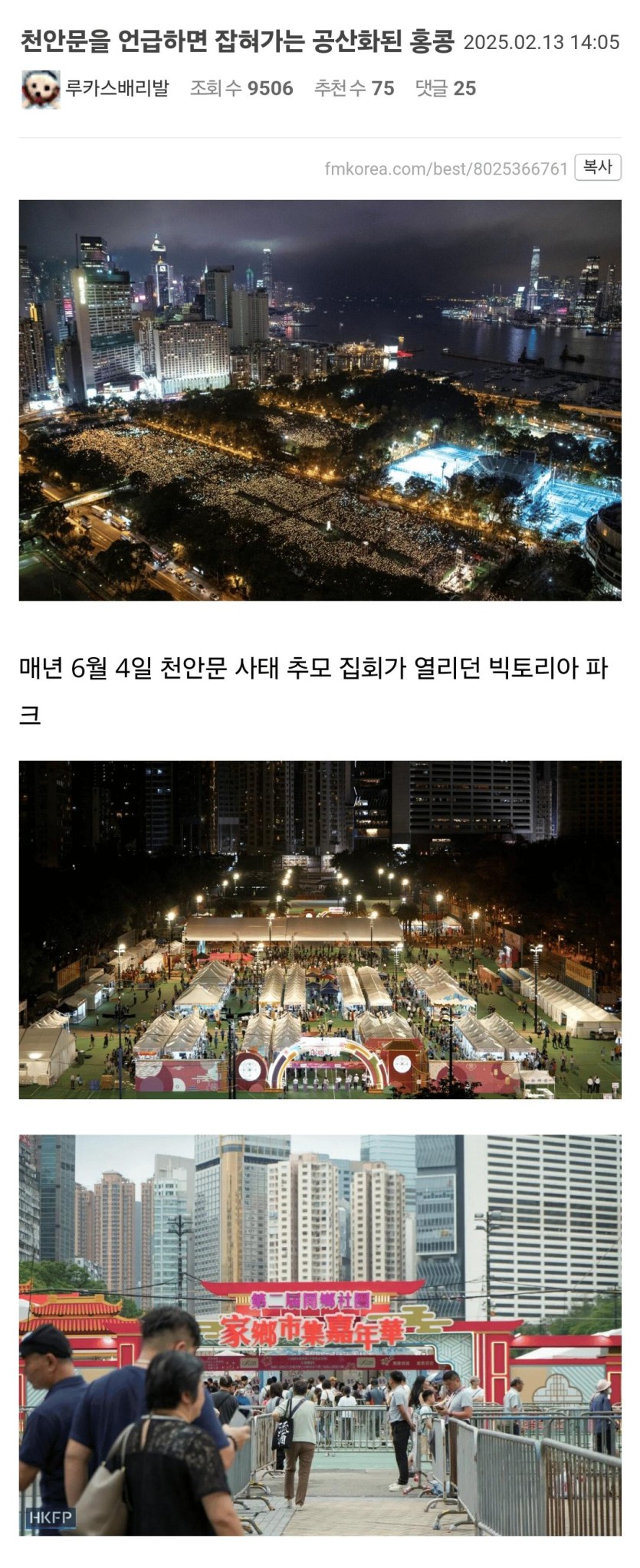 천안문을 언급하면 잡혀가는 공산화된 홍콩