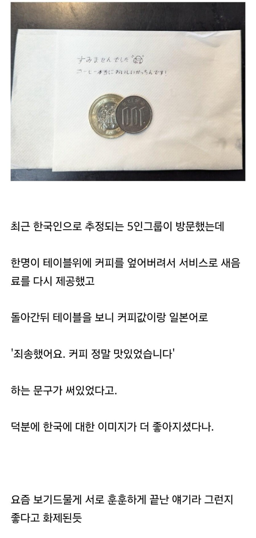 현재 일본에서 2000만뷰 찍은 커피 엎지른 한국인썰.txt