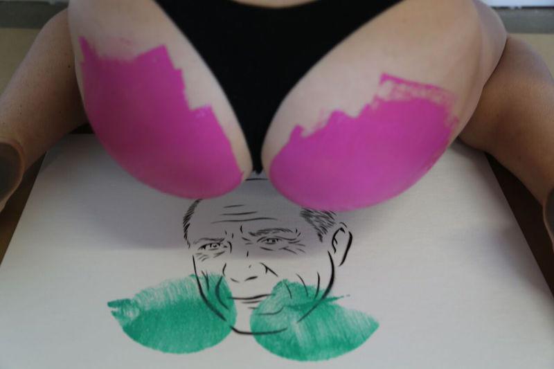 엉덩이로 그림을 그리는 미모의 쌍둥이 자매