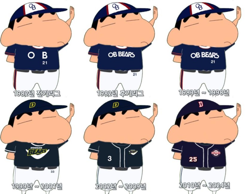 짱구로 보는 프로야구팀 유니폼의 변천사.jpg rh1 0 98 0 2025.02.13 13:15 해태 - KIA 타이거즈롯데 자이언츠빙그레 - 한화 이글스삼성 라이온즈OB - 두산 베어스MBC 청룡 - LG 트윈스삼청태현히어로즈SK 와이번스 - SSG 랜더스 0