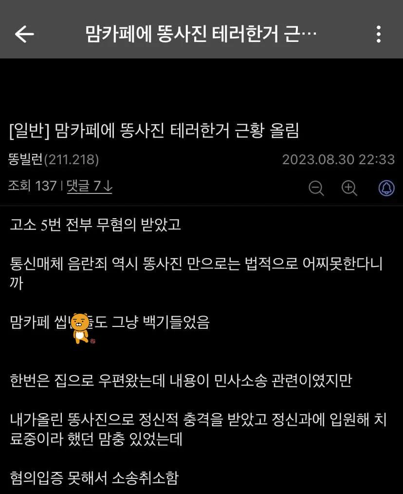 그것도 계정 수백개 사서 맘카페에 테러 했다고 함
