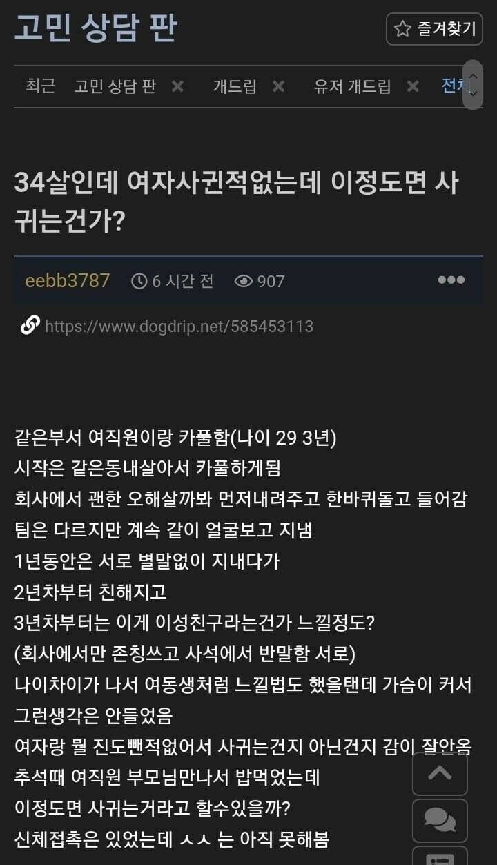 34살 모쏠인데 이정도면 사귀고 있는건가?