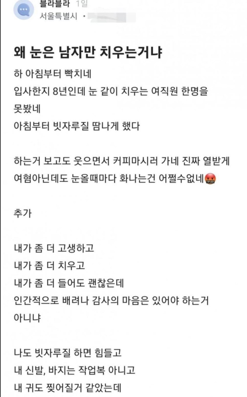 아직도 남자만 눈치운다는 서울공무원.blind