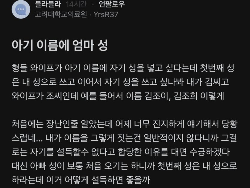 아기 이름에 엄마 성