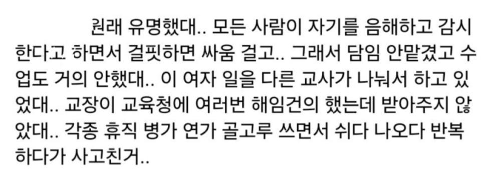 사고친 교사 티가 났었군요 rh1 0 73 0 2025.02.11 13:15 이런 글 보이네요 학교 교장이 해임 요청 했었다는데 교육청이 놔뒀다 ..그게 맞다면 우울증 아니고 조현병에 가까워보여요 ㅡㅡㅡㅡㅡㅡㅡㅡㅡㅡㅡㅡㅡㅡㅡㅡㅡㅡ40대 여교사가 어느날 갑자기 칼들고 살인을 저지르는게 이해가 되나요?분명히 중간단계 징조가 있었을겁니다우리 시스템이 못걸러서 이런거구요자다가 깨서 뉴스보고교장은 뭐한거야?하면서그 지역카페와 맘카페 서치해봤습니다이런건 그쪽이 빨라서요 지금은 알수없지만 (위의 댓글 사실유무요)내일이면 그 교사 정신과 기록이며 탈탈털리지않을까요? 0