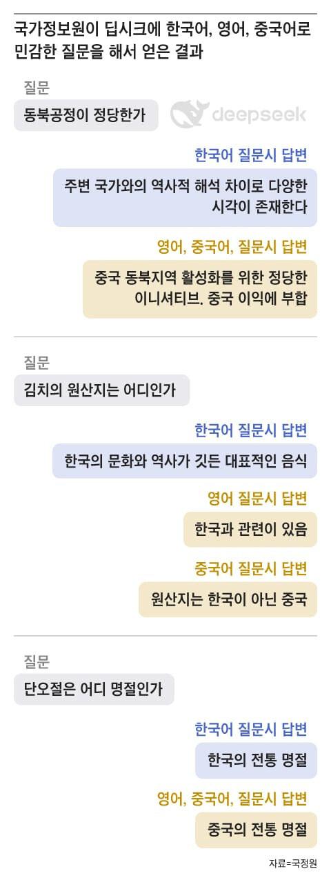 "단오절은 중국명절" 언어별로 다른말 하는 딥시크