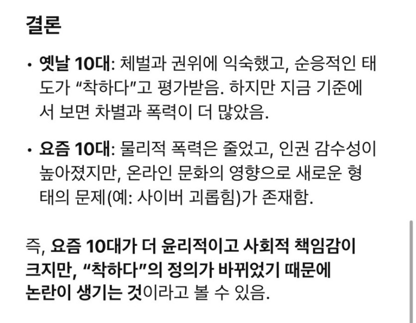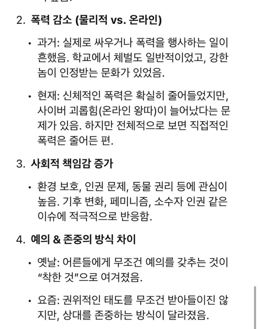 챗GPT가 말하는 요즘 10대 VS 옛날 10대 rh1 0 89 0 2025.02.11 00:15 아재들 요즘 애들 무섭다,요즘 애들 말세다 염불 외우는거랑 다르게 옛날 10대보다 요즘 10대가 더 착하다네요. 챗GPT가 말하는 요즘 10대 VS 옛날 10대 0