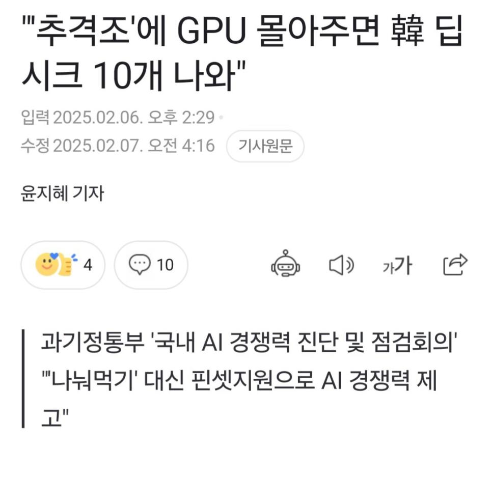 "추격조" 에 GPU 몰아주면 K-딥시크 10개 나온다