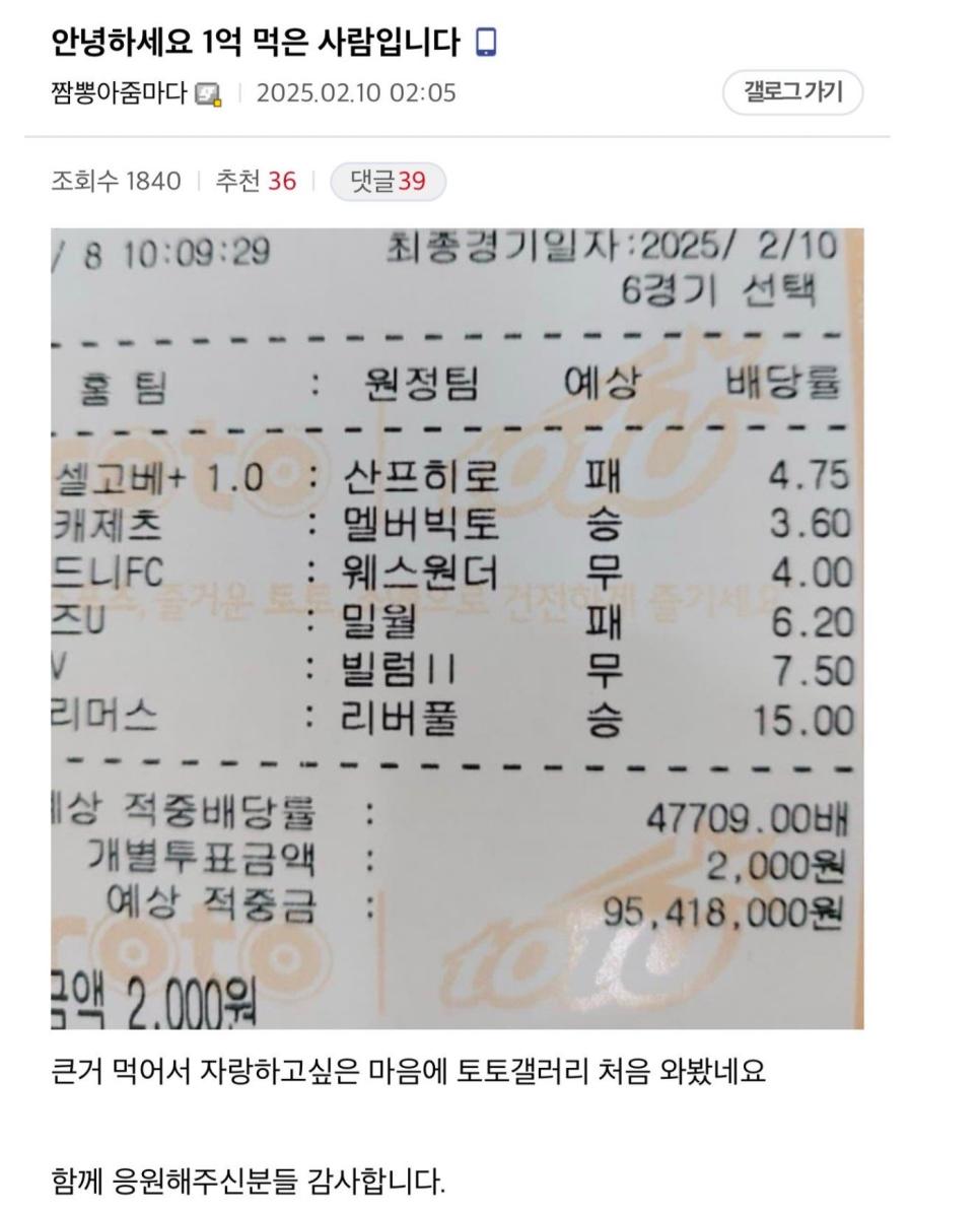 역배로 토토 1억 먹은 사람 ㄷㄷ