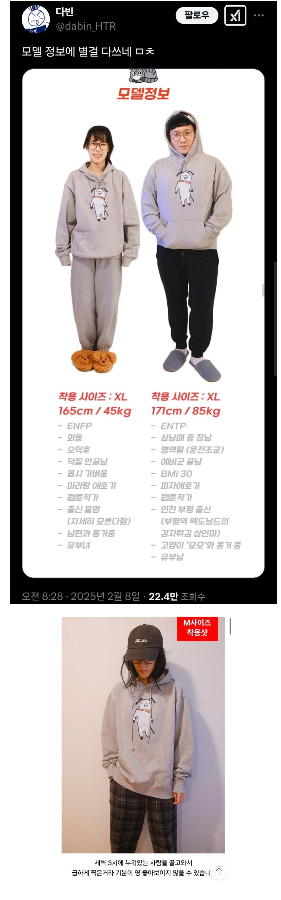 모델 정보에 별걸 다쓰는 쇼핑몰