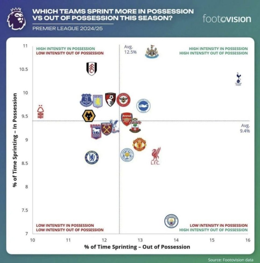 EPL팀별 스프린트 강도 ㄷㄷㄷ