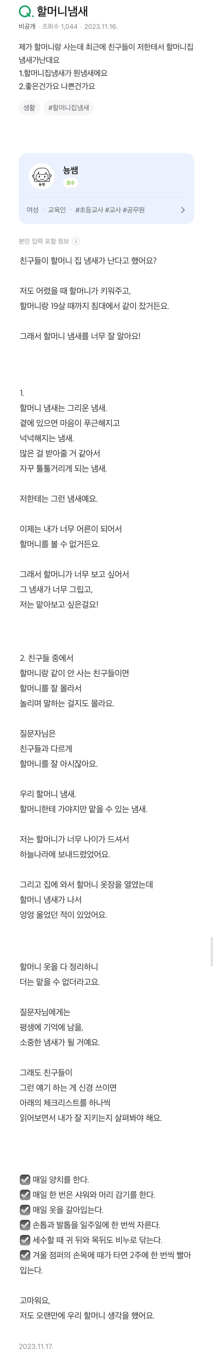 제가 할머니랑 사는데 친구들이 저한테서 할머니집 냄새가 난대요.jpg