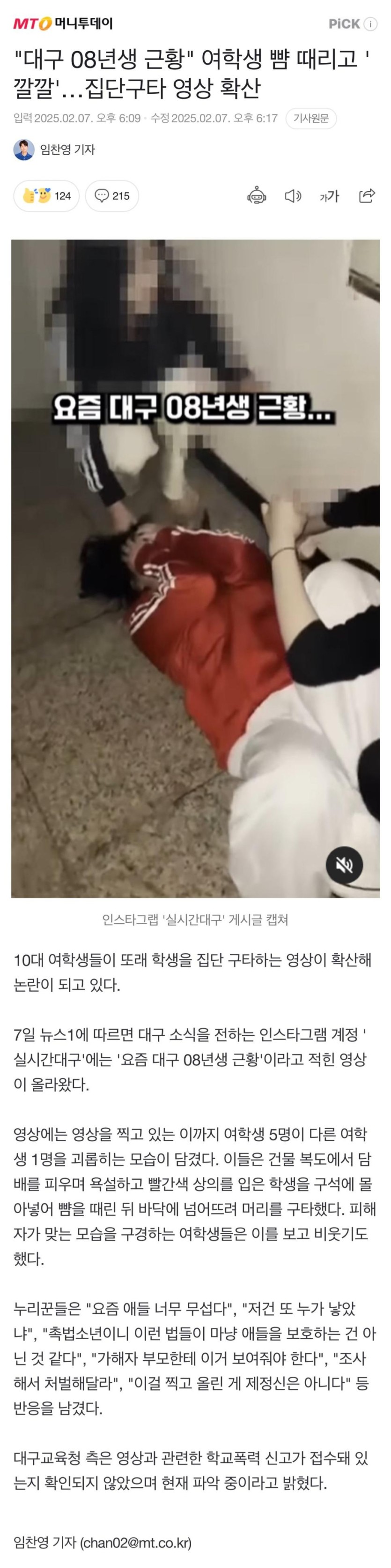“대구 08년생 근황” 여학생 뺨 때리고 깔깔… 집단구타 영상 확산