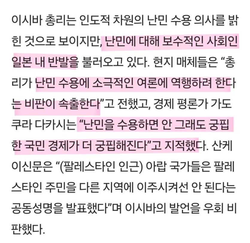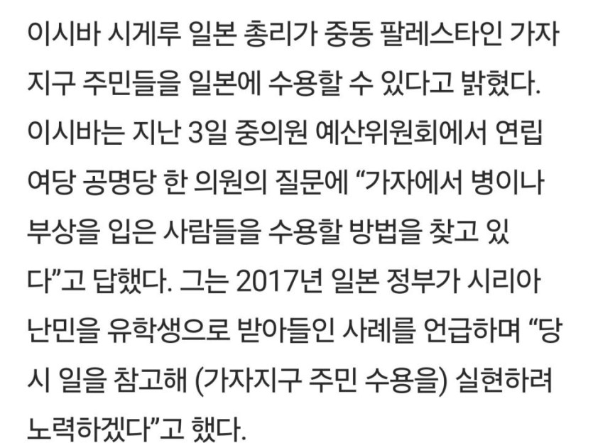 일본 총리 : 가자 난민을 일본에 수용할 방법 찾는중
