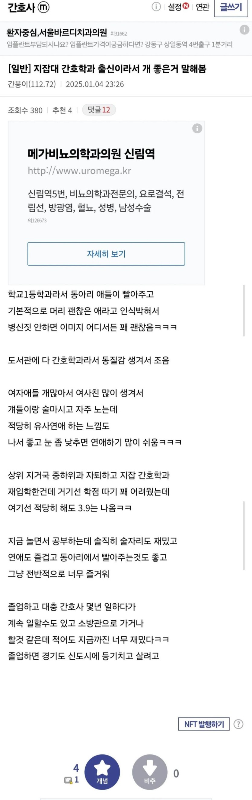 ??? : 지잡대 간호학과 남자는 연애 걱정 없음ㅋㅋ