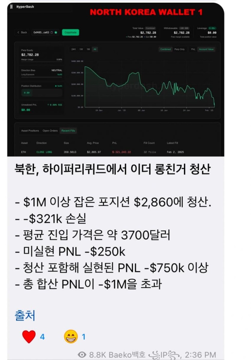 북한 이더리움 롱 청산