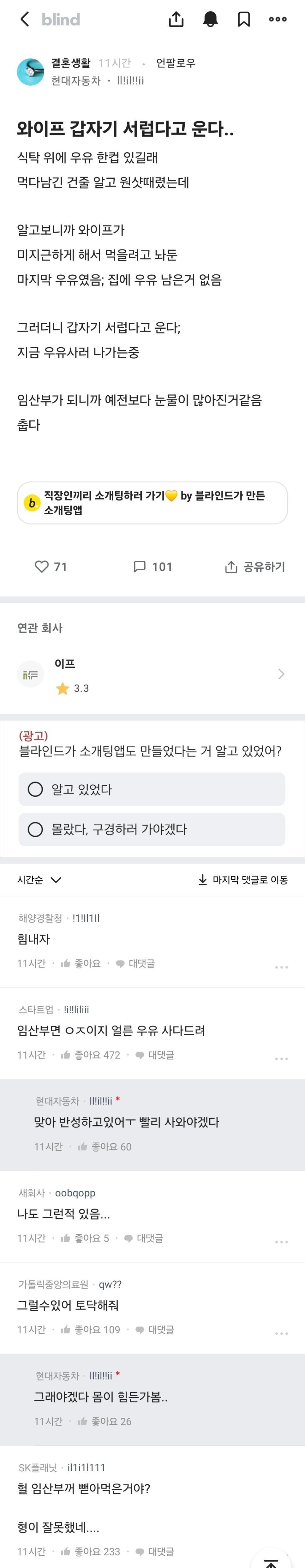 임신한 와이프 울린 블라인