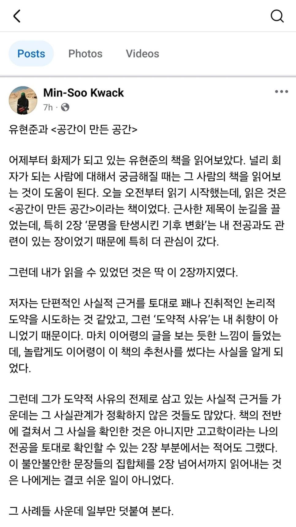 '설민석 저격' 곽민수 소장, 이번엔 유현준 건축학 교수 비판 "사실관계 부정확한 것들 많아” rh1 0 120 0 2025.02.09 04:45 1줄요약 : 유현준 책을 읽기 시작했는데 오류가 너무 많아서 2장이상 못읽겠다. 0