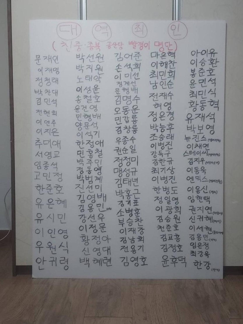 극우방에 올라온 빨갱이 명단