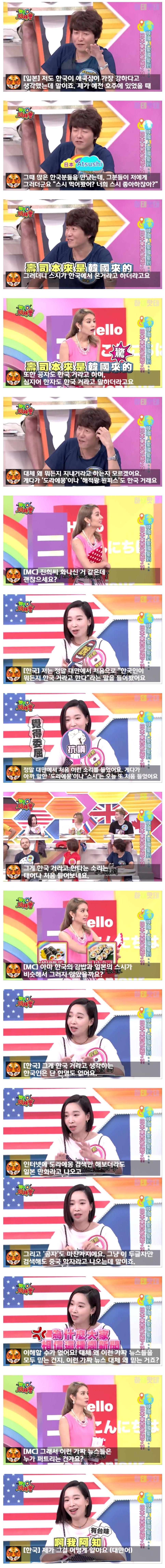 대만 예능에서 또 허위사실 유포하는 일본인