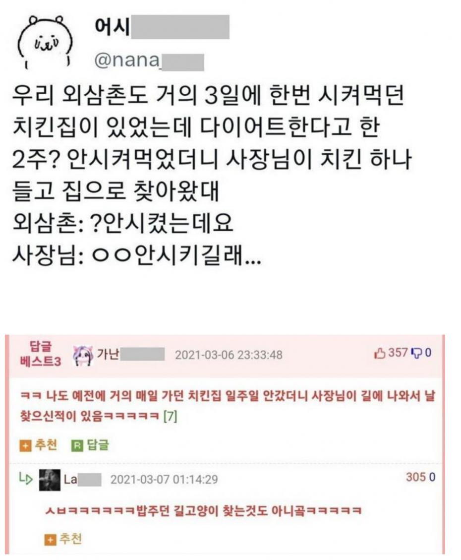 늘 시켜먹던 단골집에 다이어트 한다고 배달 끊었더니