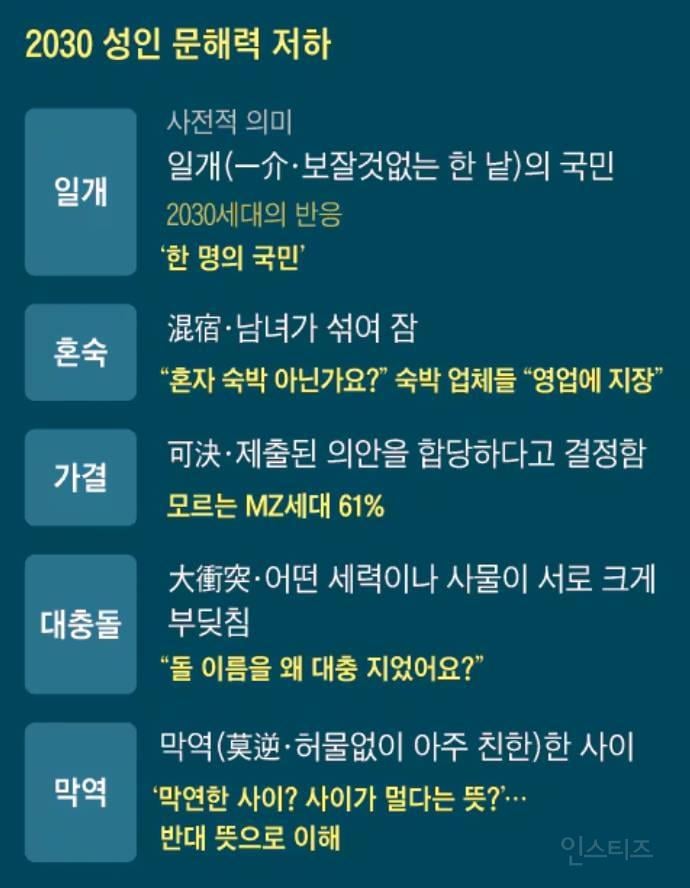 혼숙을 "혼자 숙박", 우천시 취소엔 "어느 도시?"…2030 문해력 저하